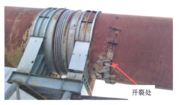 暂时将外部壳体开裂处进行补焊,然后加固拉筋,防止事态的进一步恶化,先稳定生产正常运行。然后利用回转窑检修期间处理外部壳体开裂问题。