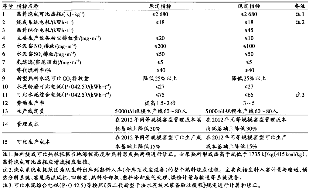 表1 新的第二代新型干法水泥示范线主要技术经济指标达标要求