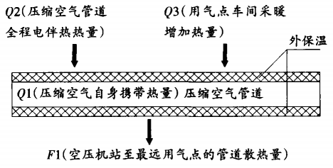 图1 寒冷地区压缩空气管道热量平衡示意图