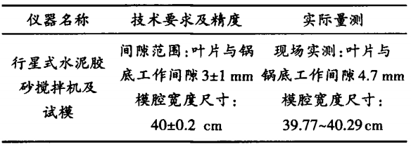 (3)胶砂搅拌机。行星式搅拌机叶片与搅拌锅锅底间隙,叶片与锅壁工作间隙3±1mm标准要求,搅拌叶片的转速低速挡、高速挡的自传、公转符合要求,且运行平稳,设备完好。
