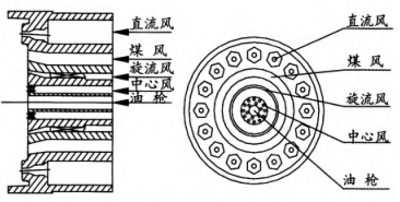更换国产大推力、高风速EPIC四通道煤粉燃烧器,见图5,6,相应配套设备作出调整。