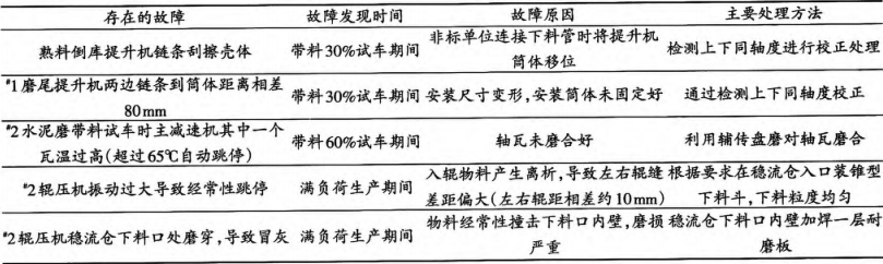 表4 水泥磨系统调试试产期间故障情况及处理方法