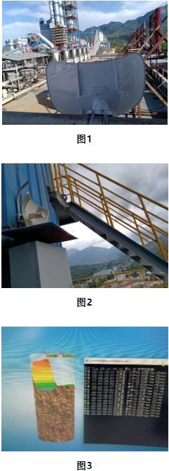 首先我们将现场的雷达料位与无线网桥通过POE来与雷达料位仪连接好,数据传输端口与雷达料位仪连接,网桥供电端口直接与无线网桥连接,DC12~24V是通过电源适配器接入到220V交流电来给网桥供电,根据同样的方法将另一个无线网桥的数据接口接到检测电脑的网卡或者其上位交换机,在安装完成后还需库顶调整好网桥角度,使两个网桥的天线尽量保持相向状态,以保证数据传输的稳定性及高效性,如图,图1、2为分别为监测处与熟料库顶现场安装位置。